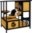 PawHut Tierhöhle Katzenhaus aus Holz mit Hängebrücke, Balkon, Plattform, für 1-2 Katzen bis 5 kg, Gelb