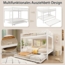 Das Etagenbett aus robustem Metall bietet mit seinen Maßen von 140x200 cm und einem Ausziehbett eine praktische Lösung für Kinderzimmer. Die hohe Geländer sorgen für Sicherheit, während das moderne Design in Weiß stilvoll in jede Umgebung passt. Mit einer Gewichtskapazität von 150 kg und einer empfohlenen Matratzenstärke von 10 cm für das Hauptbett sowie 10 cm für das Ausziehbett ist es ideal für Familien mit mehreren Kindern. Die Montage ist einfach und schnell durchzuführen.