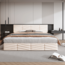 Polsterbett mit höhenverstellbarem Kopfteil,205.5*165*90-95 cm, Beige Stauraumbett,inklusive Taschenfederkern