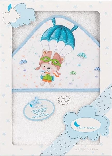 Interbaby 01228-11 Baby Kapuzenbadetuch PARACAIDISTA, weiss e blau, Blau