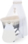 Lieferumfang1x Untergestell, 1x Korb, 1x Matratze, 1x Spannbettlaken, 1x Nestchen, 1x Himmel mit Herz-Deko, 1x Schlafsack