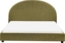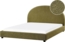 Minimalistisches Wasserbett Bouclé VAUCLUSE in olivgrün mit halbrundem Kopfteil. Dieses Doppelbett vereint edlen Retro-Stil mit texturreichen Stoffen und geschwungenen Formen. Die pflegeleichte und langlebige Polsterung sorgt für hohen Komfort und ist ideal für Haustierbesitzer. Das hohe, gepolsterte Kopfteil bietet zusätzlichen Komfort beim Anlehnen.