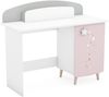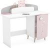 Der Kinderschreibtisch "Savannah" in Weiß aus MDF ist der ideale Platz für kleine Prinzessinnen, um kreativ zu sein. Mit kompakten Abmessungen von 113,2 cm Breite, 94,5 cm Höhe und 50 cm Tiefe bietet er ausreichend Raum für Schreib- und Bastelarbeiten. Der Tisch verfügt über eine Holztür, ein Ablagefach und einen verstellbaren Einlegeboden, um alle wichtigen Utensilien sicher zu verstauen. Die liebevollen Details und die Farbkombination aus mattem Weiß, Rosa und Grau machen ihn zu einem echten Blickfang.