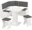 Kompakte und praktische Eckbankgruppe Ecuador im attraktiven Design, ideal für bis zu 4 Personen. Das 4-tlg. Set besteht aus einer Eckbank mit Stauraum, einem Tisch und zwei Hockern. Die gepolsterten Sitzflächen und Rückenlehnen sorgen für hohen Komfort. Die Rückseite ist mit technischem Stoff bezogen.
