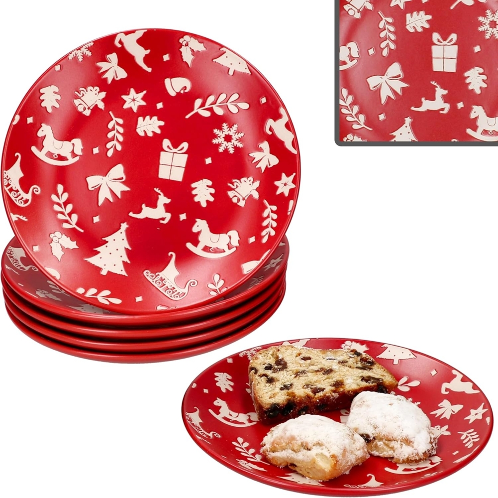 MamboCat Frühstücksteller 6er Set Advent Kuchenteller Ø20cm Rot Weihnachten Dessert Gebäck