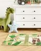 Bringen Sie mit dem Kinderteppich JANHTO im Dschungelmotiv ein fröhliches Flair in das Kinderzimmer. Der mehrfarbige Teppich aus 95 % Baumwolle und 5 % Polyester bietet eine weiche und strapazierfähige Oberfläche, die zum Spielen einlädt. Mit einer Florhöhe von 2 cm und den Abmessungen 80x150 cm sorgt die rutschfeste Unterseite für Sicherheit. Handgefertigt und mit leuchtenden Farben ist dieser Teppich eine großartige Ergänzung für jedes Kinderzimmer.