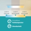 - dimmbar sowie Lichtfarbe einstellbar (warmweiß, neutralweiß, kaltweiß)