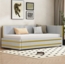 Das Flieks Daybett ist ein stilvolles Polsterbett, das sich ideal als Sofabett oder Kinderbett eignet. Mit einem eleganten goldenen Streifendesign und einer Größe von 205 x 97 x 65,5 cm bietet es sowohl Komfort als auch Funktionalität. Der Bezug aus Samt und die robuste Konstruktion aus Metall, Sperrholz und MDF sorgen für Langlebigkeit. Es ist für eine Matratze von 90x200 cm geeignet (Matratze nicht enthalten) und hat eine empfohlene Matratzenstärke von 8-10 cm.
