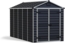 Robustes und effizientes Kunststoff Gerätehaus Skylight 612 von Palram - Canopia in dunkelgrau. Mit den Abmessungen 379 x 185 x 217 cm bietet es optimalen Stauraum für Gartengeräte, Fahrräder und mehr. Die hochwertigen Kunststoffpaneele und der wartungsfreie Aluminiumrahmen garantieren Langlebigkeit und Witterungsbeständigkeit. Skylight Polycarbonat-Dachpaneele sorgen für Tageslicht, während Belüftungsöffnungen für Luftzirkulation sorgen. Die Montage ist dank des „Easy-Slide“ Schiebepaneel-Systems schnell und unkompliziert.