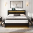 Polsterbett mit kombinierter USB-Ladefunktion, LED-Beleuchtung und vier Schubladen, 140 x 192 x 99-109 cm, Schwarz, ohne Matratze Bild 1