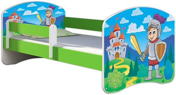 Das ACMA Kinderbett Jugendbett in Grün bietet eine sichere und komfortable Schlafumgebung für Ihr Kind. Mit einer stabilen Konstruktion aus hochwertigen Spanplatten und einem verstellbaren Rausfallschutz sorgt es für einen ruhigen Schlaf. Die bunten, laminierten Aufdrucke aus ökologischen Farben verblassen nicht. Das Bett ist für ein Gewicht von bis zu 120 Kilogramm geeignet und wird mit einer Schaumstoffmatratze geliefert.