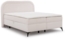 Das Modell Sonna verbindet stilvolles Design mit einem Höchstmaß an Komfort und Funktion. Mit seinem sanft abgerundeten Kopfteil und der edlen Bouclé-Polsterung fügt sich dieses Bett perfekt in moderne Einrichtungstrends wie Japandi oder Boho ein und wird schnell zum Mittelpunkt jedes Schlafzimmers. Gefertigt aus FSC®-zertifiziertem Holzwerkstoff, steht das Bett nicht nur für Qualität, sondern auch für verantwortungsbewusstes Wohnen. Das Design stammt aus Deutschland, die Herstellung erfolgt in der Europäischen Union – eine Kombination, die für stilvolle Formgebung und langlebige Verarbeitung steht. Die eleganten Metallfüße sind 15 cm hoch und ermöglichen die problemlose Reinigung mit einem Saugroboter. Sie sind in drei attraktiven Varianten erhältlich: glänzendes Gold, mattes Schwarz oder zeitloser Chrom. Für höchsten Schlafkomfort sorgt ein integrierter Topper aus hochelastischem Schaumstoff. Der Bezug des Toppers ist abnehmbar und waschbar – ideal für eine einfache Pflege und dauerhaftes Frischegefühl. Die Matratzen des Bettes verfügen über einen Bonellfederkern in Kombination mit hochwertigem Schaumstoff (Härtegrad H3), was für eine angenehme Unterstützung des Körpers sorgt. Die komfortable Liegehöhe von 52 cm erleichtert das Ein- und Aussteigen – perfekt für den Alltag. Zudem bietet das Bett großzügigen Stauraum, der dezent integriert ist und Platz für Bettwäsche, Decken oder Kissen schafft. Erhältlich ist das Boxspringbett Sonna in sechs stilvollen Farben: Weiß, Hellbeige, Grün, Terrakotta, Hellgrau und Schwarz – für harmonische Kombinationen mit jedem Interieur.