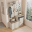Dieser moderne Flurschrank mit den Abmessungen 110 x 37 x 185,5 cm vereint stilvolles Design und praktische Funktionalität. Die robuste MDF-Konstruktion sorgt für Stabilität, während die gepolsterte Sitzfläche das An- und Ausziehen der Schuhe erleichtert. Soft-Close-Scharniere garantieren ein leises Öffnen der Türen. Verstellbare Regale und praktische Haken bieten zusätzlichen Stauraum für Schuhe, Taschen und Accessoires. Ein großer Spiegel rundet das Design ab und bringt Helligkeit in Ihren Eingangsbereich.