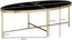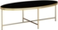 Entdecken Sie den eleganten Design Couchtisch mit ovaler Tischplatte aus schwarzem Einscheiben-Sicherheitsglas und einem filigranen, matt lackierten Gold Metallgestell. Mit einer Breite von 110 cm, einer Höhe von 40 cm und einer Tiefe von 56 cm bietet dieser Tisch ausreichend Platz für Ihre Lieblingszeitschriften und Snacks. Der Tisch überzeugt durch seine Stabilität und schützt dank schwarzer Kunststoffkappen an den Füßen Ihren Boden vor Kratzern.