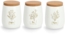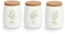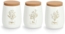 Entdecken Sie das charmante Set aus drei Vorratsdosen von Zeller Present, das Ihrem Zuhause einen Hauch von Nostalgie verleiht. Jede Dose in Creme-Weiß mit goldener Schrift ist ein echter Blickfang und bringt einen leichten Vintage-Charme mit sich. Der natürliche Korkdeckel schützt den Inhalt zuverlässig vor äußeren Einflüssen und macht die Dosen ideal für die Aufbewahrung von trockenen Lebensmitteln, losem Tee oder süßen Leckereien.