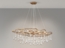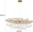 Die große LED Pendelleuchte in mattem Gold mit Glas Behang vereint modernes Design und hochwertige Verarbeitung. Mit einer Breite von 107 cm und einer Abhängung von 305 cm ist sie ideal für hohe Räume. Der netzförmige Korpus aus gebürstetem Metall wird durch tropfenförmige Echtglas Elemente ergänzt, die an fallende Wassertropfen erinnern. Ausgestattet mit acht E14 Fassungen, bietet die Leuchte warmweißes Licht und ist in drei Stufen dimmbar.