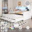 Das Tagesbett ist ein multifunktionales Schlafsofa mit einer Liegefläche von 140x200 cm. Es bietet reichlich Stauraum durch 3 Schubladen und eine Nachttischablage. Hergestellt aus hochwertigem MDF und Spanplatte, ist es langlebig und feuchtigkeitsbeständig. Mit einer Gesamtgröße von 210 x 260 x 115 cm und einer Gewichtskapazität von 200 kg ist es ideal für verschiedene Nutzungsszenarien. Die Lieferung erfolgt ohne Matratze.
