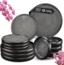 Das Moritz & Moritz Kombiservice SOLID ist ein 12-teiliges Geschirrset in stilvollem Anthrazit, das für 4 Personen ausgelegt ist. Es besteht aus 4 Speisetellern (26 cm Ø), 4 Desserttellern (21 cm Ø) und 4 Suppentellern (19 cm Ø), gefertigt aus robustem Steinzeug. Jedes Stück ist dank der reaktiven Glasur ein Unikat und eignet sich sowohl für den täglichen Gebrauch als auch für besondere Anlässe. Das Set ist spülmaschinen- und backofenfest und wird in einem eleganten Geschenkkarton geliefert.