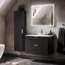 Badmöbel Set ADELAIDE-56-BLACK in matt schwarz mit gerillter Front