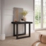 Der ausziehbare Konsolentisch von Skraut Home vereint Funktionalität und modernes Design. Mit einem stabilen Teleskopmechanismus aus Aluminium und einem zentralen Bein bietet er eine sichere Struktur. Der Tisch kann auf eine Länge von 140 cm erweitert werden und bietet Platz für bis zu 6 Gäste. Die elegante schwarze Ausführung mit hochwertiger poröser Holzmaserung macht ihn zu einem stilvollen Möbelstück für jeden Raum.