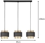 Die Pendelleuchte LOUNGE ist eine elegante 3-flammige Leuchte aus goldfarbenem Metall mit stilvollen Stoffblenden in Schwarz. Mit einer Breite von 85 cm und einem Schirmdurchmesser von jeweils 21 cm sorgt sie für eine angenehme Lichtverteilung und schafft eine besondere Atmosphäre in Ihrem Zuhause. Die Abhängung von 200 cm macht sie ideal für hohe Räume und über Esstischen.