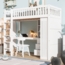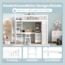 Dieses funktionale Hochbett mit integriertem Schreibtisch, Kleiderschrank und drei Schubladen bietet durchdachtes Design und praktischen Stauraum. Gefertigt aus hochwertigem Kiefernholz und MDF in Weiß, vereint es Stabilität und Langlebigkeit. Mit einer Gesamtgröße von 205 x 95 x 180 cm und einem Innenmaß von 90x200 cm ist es ideal für Kinder- und Jugendzimmer. Das umlaufende Geländer und die breite Treppe sorgen für Sicherheit und Komfort.