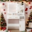Der Schminktisch mit Spiegel und 10 LED-Beleuchtung vereint modernes Design und praktische Funktionalität. Mit einer Größe von 40 x 90 x 140 cm (T x B x H) bietet er ausreichend Platz für Ihre Kosmetikartikel. Die einstellbare Helligkeit der LED-Lichtkugeln sorgt für ein optimales Make-up-Erlebnis, während der klare Spiegel und die durchdachte Aufbewahrungslösung für Ordnung und Eleganz sorgen.