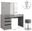 Schminktisch Sherry Grau 120 cm mit LED Beleuchtung und Hocker Vicco