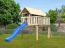 Das AKUBI Stelzenhaus "Fidel" in terragrau mit blauer Rutsche bietet einen sicheren und großzügigen Spielbereich für Ihre Kinder. Mit 19 mm starken Wandbrettern und 4 Massivholzpfosten sorgt es für Stabilität und Sicherheit. Die Podesthöhe beträgt 150 cm, während das Außenmaß des Hauses 120 x 244 x 325 cm und die Dachfläche 5,9 m² beträgt.