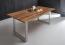 Der Esstisch "Milo" aus naturbelassenem Massivholz Akazie (35 mm) mit silbernem U-Gestell vereint Natürlichkeit und modernes Design. Die pflegeleichte Tischplatte ist naturfarben lackiert und besticht durch ihre einzigartige Baumkante. Mit den Maßen von 200 x 100 cm fügt sich der Tisch harmonisch in verschiedene Einrichtungsstile ein und ist dank der individuellen Holzmaserung ein echtes Unikat.