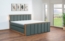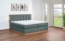 Meisterbetten Boxspringbett Sely mit Holzdekor Eiche Cognac 160x220 in LM-Moorblau, Matratzenbezug Nano, Midisoft-Topper