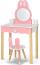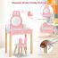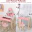 Der COSTWAY Kinder Schminktisch mit Hocker ist das ideale Geschenk für kleine Prinzessinnen. Mit seinem 2-in-1 Design kann er sowohl als Schminktisch als auch als Schreibtisch ohne Spiegel verwendet werden. Hergestellt aus hochwertigem Holz und MDF, bietet er Stabilität und Langlebigkeit. Die große Tischplatte und die Schublade sorgen für ausreichend Stauraum, während die Rückenlehne mit Hasenohren hohen Sitzkomfort bietet. Der Schminktisch passt perfekt in jedes Kinderzimmer.