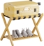 Der SMIBUY Gepäckträger vereint Funktionalität und elegantes Design. Hergestellt aus 100% massivem Bambusholz, bietet er eine Tragfähigkeit von bis zu 72 kg für das obere Regal und 22,68 kg für das untere Regal. Mit einem praktischen Unterregal und kompakten Abmessungen von 67 x 41 x 54 cm ist er ideal für Gästezimmer, Hotels oder Kurzzeitvermietungen. Faltbar und platzsparend, lässt er sich auf nur 67 x 7 x 65 cm verstauen.