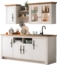Die hochwertig verarbeitete Küche »KS-Westminster« im Landhausstil aus der Kollektion von Kochstation betont das stilvolle Ambiente in deinem zu Hause. Optisch zeichnet sie sich durch das geschmackvolle Design im Bi-Colour-Look aus. Attraktive Akzente setzen die kontrastierenden Kränze, Absetzungen und die Arbeitsplatte. Raffiniert lenken die außergewöhnlichen Griffe und Beschläge die Blicke deiner Gäste auf sich. In den Unter- und Hängeschränken stellt die Küchenzeile dir genügend Stauraum für unterschiedliche Dinge des Küchenalltags zur Verfügung. Den doppeltürigen Glashängeschrank mit optionaler Beleuchtung bietet sich für Dekoaccessoires an. Zudem findest du auf dem Regal nützliche Stellfläche. Gefertigt wird die Einbauküche aus FSC®-zertifiziertem Holzwerkstoff. Die Arbeitsplatte wird ohne Ausschnitt geliefert, sodass du die Komponenten nach individuellen Vorstellungen platzieren kannst. Praktisch und gemütlich: die hochwertig verarbeitete Kochstation Küche »KS-Westminster« im Landhausstil.
