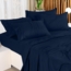 Utopia Bedding Bettwäsche-Set für King-Size-Betten, 4-teilig, in Marineblau. Das Set umfasst ein Bettlaken (266,7x259,1 cm), ein Spannbetttuch (198,1x203,2 cm) mit 38,1 cm hoher Box und zwei Kissenbezüge (50,8x101,6 cm). Hergestellt aus gebürstetem Mikrofaser-Polyester, bietet es außergewöhnliche Weichheit und ist sowohl schrumpf- als auch farbbeständig. Pflegeleicht und ideal für ganzjährige Nutzung.