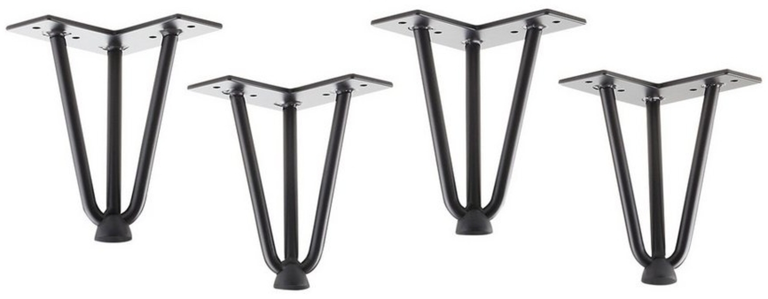 SO-TECH® Tischbein Haarnadelbeine mit Bodenschutz Montageplatte 12x12cm, schwarz lackiert Höhe 150 mm (Rundstahl)