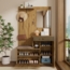 Dieser moderne Flurschrank mit den Abmessungen 110 x 37 x 185,5 cm vereint elegante Optik und durchdachte Funktionalität. Die robuste MDF-Konstruktion sorgt für Stabilität, während Soft-Close-Scharniere ein leises Öffnen der Türen ermöglichen. Verstellbare Regale bieten flexible Stauraumlösungen, und eine gepolsterte Sitzfläche erleichtert das An- und Ausziehen der Schuhe. Ein großer Spiegel und praktische Haken runden das funktionale Design ab.