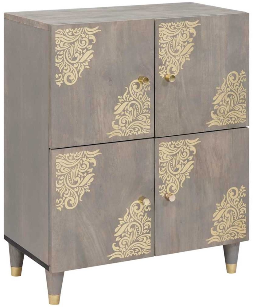vidaXL Sideboard Grau und Gold 60 x 33 x 75 cm Massivholz Mango 4018798