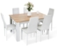 Die Mondeer Essgruppe ist eine stilvolle 7-teilige Esszimmergruppe, bestehend aus einem rechteckigen Tisch und sechs ergonomischen Stühlen. Die Kombination aus Spanplatte und Lederimitat in Weiß und Natur sorgt für ein modernes Ambiente. Die Stühle bieten eine hohe Belastbarkeit von 120 kg und sind mit einer Sitzhöhe von 46 cm besonders komfortabel. Der Tisch hat eine Dicke von 6 mm und eine Belastbarkeit von 60 kg.