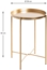 Freuen Sie sich auf einen ca. 50 cm hohen Tisch mit goldfarben lackiertem Stahlrohrgestell und einer runden Ablage. Diese ist ebenfalls in der Farbe Gold gestaltet und besteht aus entsprechend lackiertem Metall. Ihr Durchmesser beträgt ca. 39 cm.