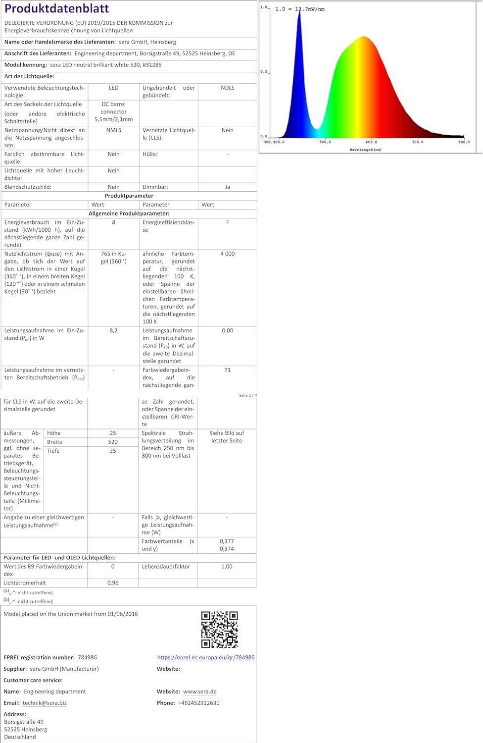 - Farbtemperatur von ca. 3.850 Kelvin