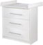 Die drei Schubladen bieten viel Stauraum – so haben Sie bei der Babypflege alles griffbereit. Ohne Wickelansatz dient der Wickeltisch als Kommode – ganz ohne sichtbare Schrauben in der Oberplatte. Der montagefreundliche Wickeltisch ist in Deutschland entwickelt und entspricht den aktuellen Sicherheitsstandards nach EN 12221.