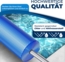 Durch die Anwendung der Solarplane reduzierst du die Wasserverdunstung um bis zu 90 %, was besonders in heißen Sommermonaten von Vorteil ist. Weniger Wasserverlust bedeutet auch weniger Nachfüllen und geringeren Einsatz von Chemikalien, was sowohl die Umwelt als auch deinen Geldbeutel schont. Zusätzlich schützt die Plane effektiv vor Schmutz, Laub, Insekten oder Blütenstaub – dein Pool bleibt länger sauber und hygienisch. Für eine bequeme Nutzung wird ein umfangreiches Zubehör-Set mitgeliefert: 12 Ösen, eine Lochzange sowie eine praktische Schere ermöglichen eine einfache Anpassung und Fixierung. Die Plane ist zudem kompatibel mit den Poolaufrollsystemen von KESSER®, was das tägliche Handling noch komfortabler macht. Einmal aufgerollt und verstaut, bleibt deine Abdeckung geschützt und einsatzbereit.