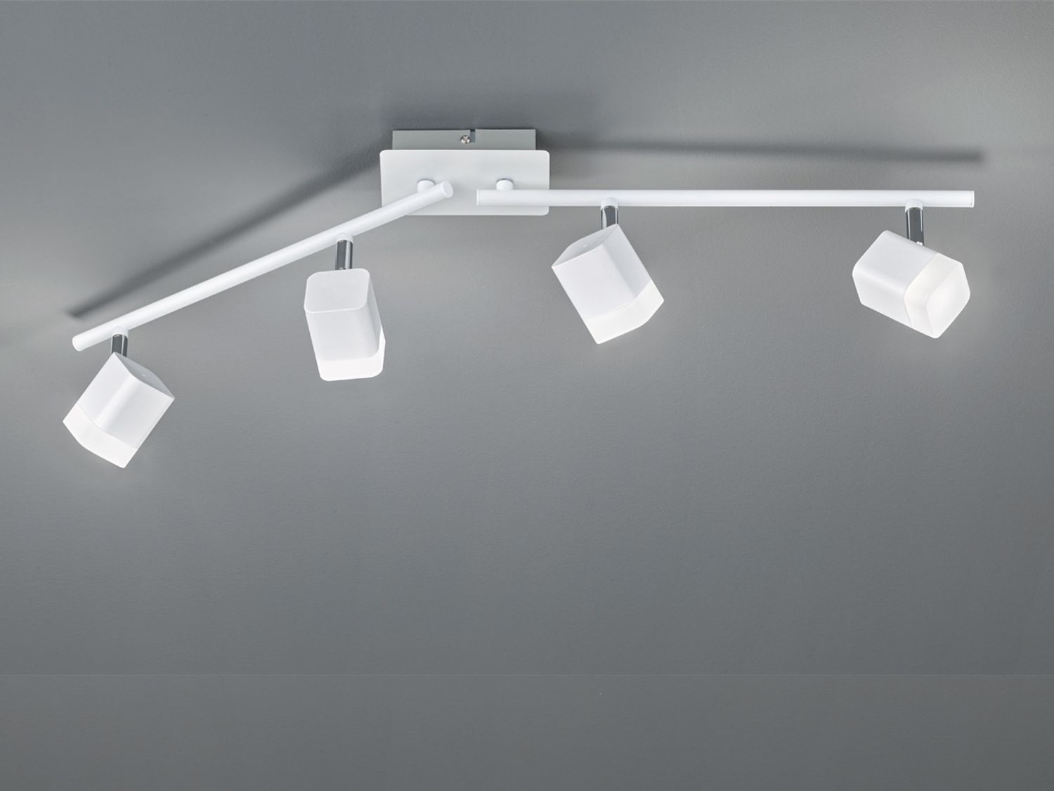 Mit dem modernen 4-flammigen Spot ROUBAIX erhalten Sie eine individuelle Beleuchtung in Ihrem Wohnraum oder Ihrem Flur. Das puristische Design passt sich perfekt jedem zeitgemäßen Einrichtungsstil an. Die Spots sind unabhängig voneinander schwenkbar, so dass Sie den Strahler Ihren Wünschen entsprechend individuell ausrichten können. Die Leuchte hat eine Länge von 78 cm. Die Leuchte harmoniert in zeitlos elegantem Weiß matt und fügt sich problemlos in verschiedene Einrichtungsstile ein. Darüber hinaus verfügt die Leuchte über eine moderne LED Technologie, die sich durch eine hohe Lichtqualität und Energieeffizienz auszeichnet. Im Vergleich zu herkömmlichen Halogen Leuchtmitteln lassen sich bis zu 80% der Energiekosten sparen. Zusätzlich haben LED Lichtquellen eine lange Lebensdauer, produzieren weniger Wärme und schonen die Umwelt.