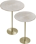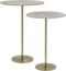 Bringen Sie Stil und Eleganz in Ihr Zuhause mit dem MIRRORS AND MORE 'Solon' Beistelltisch 2er Set. Die edlen Tischplatten und das goldfarbene Gestell ziehen alle Blicke auf sich. Mit einem Durchmesser von 38,5 cm und einer Höhe von 53 cm sowie einem Durchmesser von 36 cm und einer Höhe von 50,5 cm bieten die Tische vielseitige Nutzungsmöglichkeiten als Beistelltische, Couchtische oder dekorative Podeste.