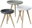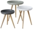 Stilvolle Beistelltische im 3er-Set, ideal für Ihr Zuhause. Die Tische kombinieren robuste Metalloberflächen mit stabilen Beinen aus Mangoholz. Mit Höhen von 47 bis 60 cm und Breiten von 39 bis 53 cm passen sie perfekt in verschiedene Wohnräume. Die praktische Schablage sorgt für eine sichere Ablage Ihrer Gegenstände.