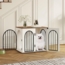 Moderne Hundebox für Zuhause, die nicht nur als sicherer Rückzugsort für Ihren Hund dient, sondern auch stilvoll in Ihre Einrichtung integriert werden kann. Mit einem einzigartigen Bogendesign und einem praktischen 3-Türen-Design ermöglicht sie einfachen Zugang für Ihren pelzigen Freund. Hergestellt aus robustem Material, bietet sie Sicherheit und Stabilität.