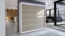 Kleiderschrank Talin IV in Weiß / Sonoma Eiche bietet modernen Stauraum mit eleganten Schwebetüren. Mit einer Breite von 180 cm, einer Höhe von 215 cm und einer Tiefe von 58 cm ist er ideal für Ihr Schlafzimmer. Die Laminatplatte mit 16 mm Dicke und die Aluminiumleisten-Griffe sorgen für eine ansprechende Optik und Funktionalität. Der Schrank ist mit einer Kleiderstange und geräumigen Regalen ausgestattet.