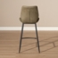 Der Bronx71 Barhocker Barrel in olivgrün vereint modernes Design mit Funktionalität. Die wasserbeständige Sitzfläche aus hochwertigem Eco-Leder und das robuste schwarze Metallgestell machen ihn ideal für Küchentheken oder Bartische mit einer Höhe von ca. 89 bis 94 cm. Mit einer Sitzhöhe von 69 cm bietet er optimalen Komfort und ist besonders pflegeleicht, was ihn perfekt für Familien macht.