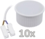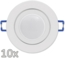Einbauleuchten-Set McShine mit 10 Rahmen und 10 LED-Modulen bietet eine effiziente Beleuchtung für Feuchträume. Mit einer Lichtleistung von 440 Lumen und einer Farbtemperatur von 3000 K sorgt es für warmweißes Licht. Die Einbaurahmen aus Aluminium sind für Leuchtmittel mit 50 mm Durchmesser geeignet und bieten Schutzklasse IP44. Die Lebensdauer der LED-Module beträgt 20.000 Stunden, bei einer Leistungsaufnahme von 5 W.